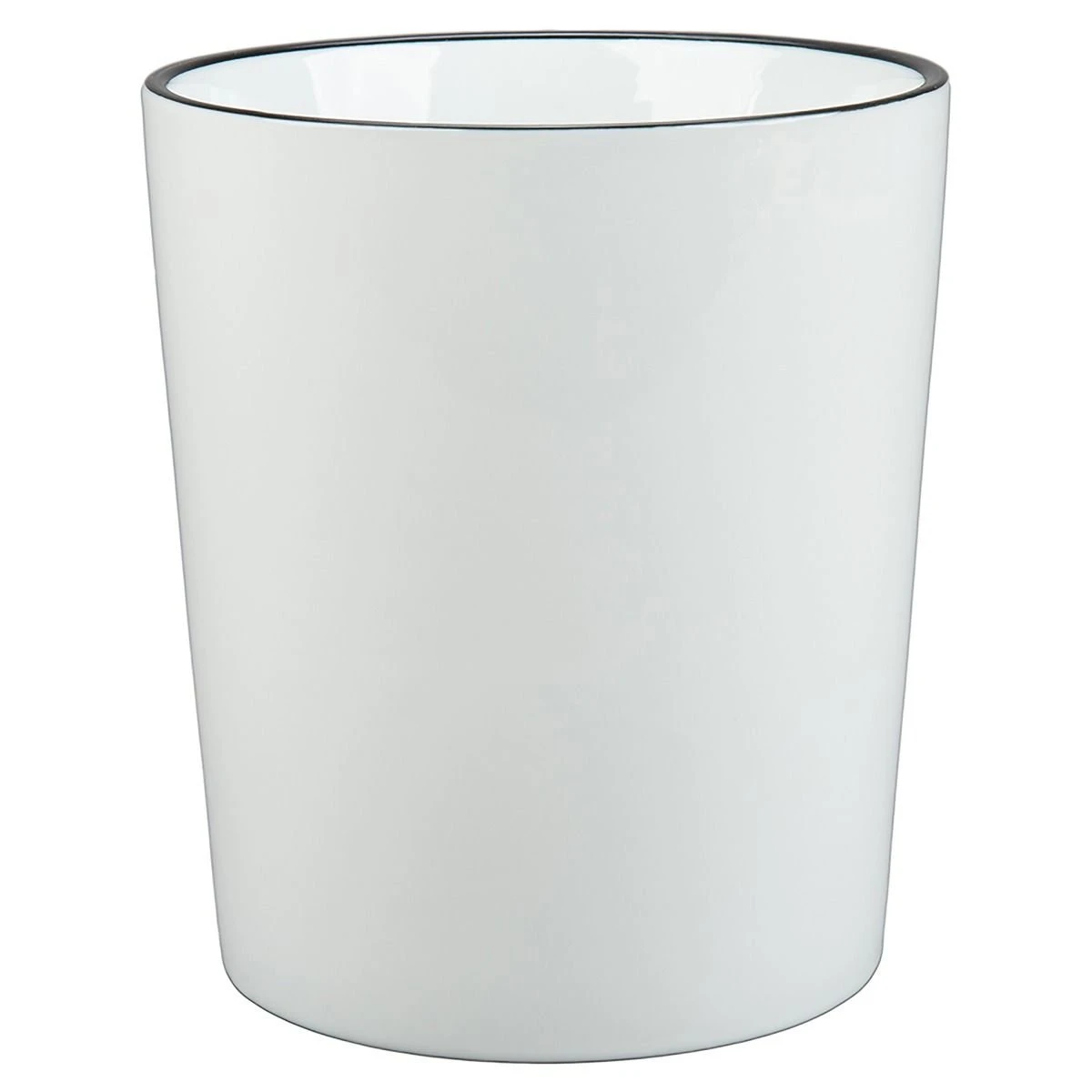 - Crisp, glossy white color with a thin black ring forming a silhouette around the rim