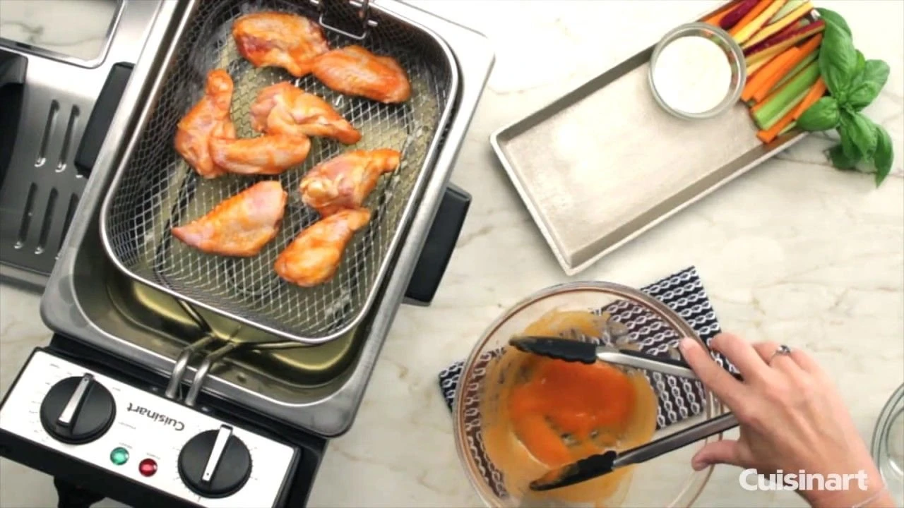 Enjoy all of your fried favorites at home with the Cuisinart 4-Qt Professional Deep Fryer (Stainless Steel)! The 1,800 watt immersion-style heating element heats quickly and efficiently while the removable oil reservoir holds 1 gallon of oil so you can fry up to 2.3 lbs of food at once. The durable stainless steel mesh basket has a cool-touch handle that provides a solid grip when moving food into or out of the oil reservoir. Adjustable temperature control gives you the flexibility to accommodate a range of oils with different smoke points, and a built-in 30-min timer helps keep track of cook time.
