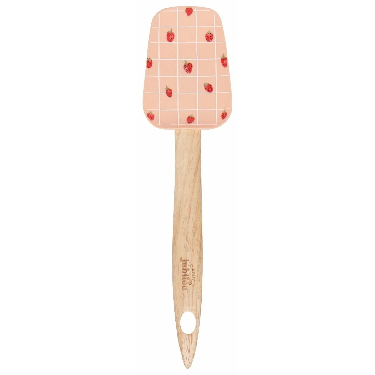 Let the beauty and sweetness of summertime strawberry fields bloom in your home all year round with the Berry Sweet Spoonulas. Made with a rubberwood handle and heat-resistant silicone head, these multipurpose tools are specially designed to double as spatulas for scraping, shaping and icing and also as spoons for mixing, stirring and serving. Both spoonulas feature a pink background checkered with thin white lines, but the larger one depicts a repeating pattern of tiny strawberries while the smaller one features one larger centered strawberry. The removable silicone heads are dishwasher-safe, but the handles should be hand washed only. To add a perfectly sweet pop of color and style to your cooking and baking routine, order your own Danica Jubilee Berry Sweet Spoonula Set today.