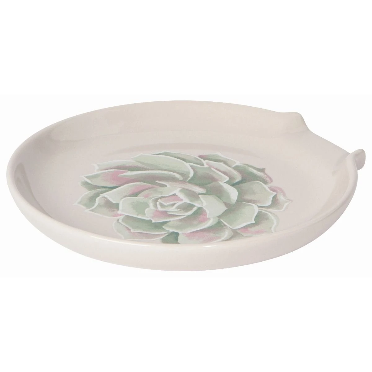Keep your kitchen and dining room surfaces mess-free with the 5.25″ Botanical Cacti Printed Spoon Rest from Now Designs by Danica! This spoon rest is printed with a succulent in soft greens and delicate pinks, bringing the surprisingly striking beauty of these hardy desert plants into your kitchen. The side divot keeps your utensil secure while the large, circular bowl catches drips and prevents unnecessary food mess. Made of glazed stoneware, this spoon rest is dishwasher-safe for easy cleanup. Use it on the countertop and stovetop while preparing and cooking food, or use it at the table while serving. For a kitchen accessory that is as beautiful to look at as it is convenient to use, order your Now Designs by Danica Botanical Cacti Printed Spoon Rest today!