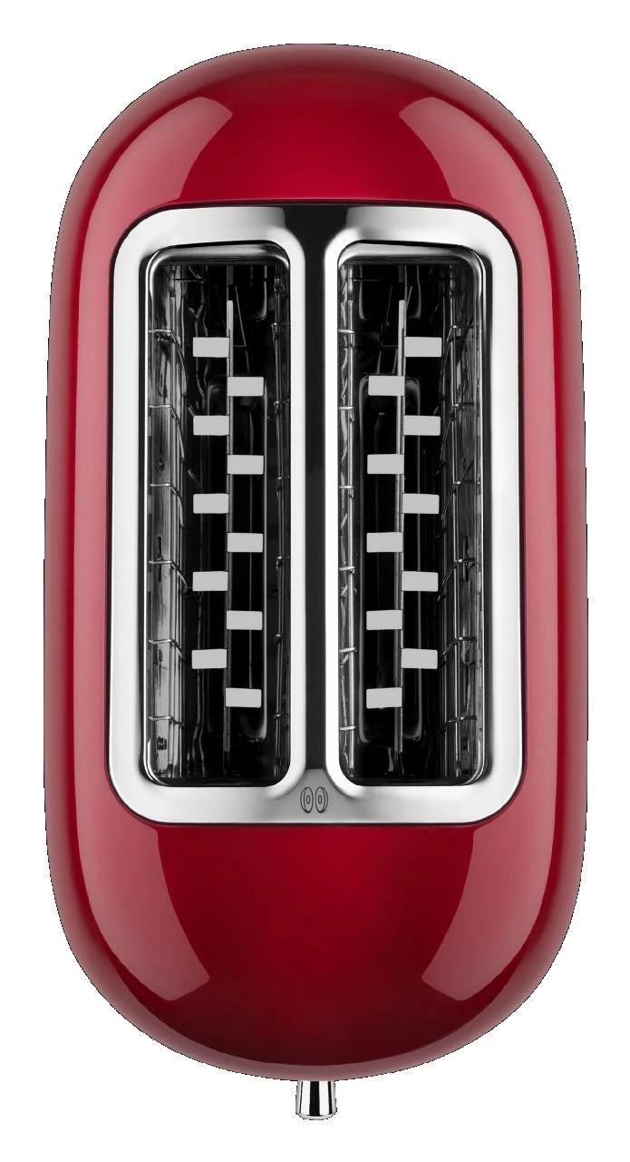 This KitchenAid Proline 2 Slice Toaster with senor lift and lower function, in Candy Apple Red, offers a classic design with a die cast aluminum construction and chrome accents. The Kitchenaid Proline Toaster’s extra-wide slots will accept the thickest bagels, breads, or pastries. This 2 slot toaster offers multiple functions including keep warm, bagel, frozen,a little longer, and toast. The automatic sensor lifts and lowers toast into the toaster.