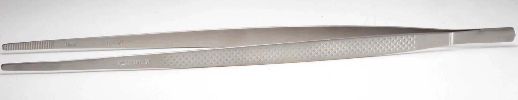 Whether your plating style is meticulously-designed or natural and “effortlessly” beautiful, Mercer Culinary has you covered with their plating tools! For placing any kind of small or delicate food precisely where you want it, reach for a pair of Straight Precision Plus Plating Tongs. Designed with less tension to provide greater control with more delicate foods, these tongs are made of 18/8 stainless steel that has been heat-treated for greater spring back so they’ll keep their shape use after use. The inside of the tongs is serrated for a better grip on food, while raised grips on the outside keep them stable in your hand, even with gloves on. These 11.75” long straight tongs have a versatile design that can be used for any number of applications. Use them to place chocolate curls on a decadent dessert, to pull shrimp or scallops from the pan, or to place asparagus precisely where you want it.