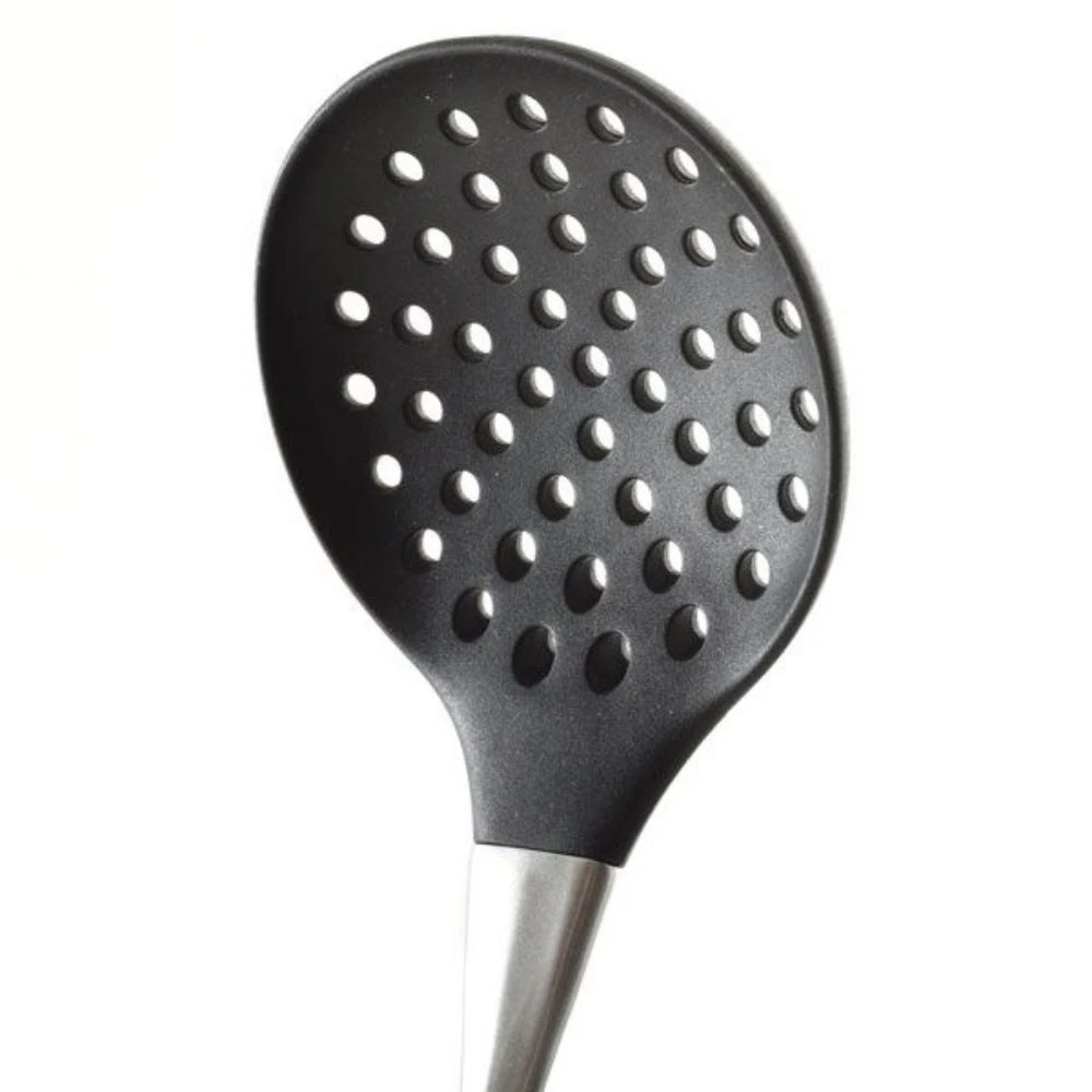 If you are looking for durable utensils that will look great in your kitchen, the Norpro Stainless Steel and Silicone Skimmer is for you. This skimmer is made of the two most durable kitchen materials with a stainless steel body and a silicone head. This makes it heat resistant up to 482°F, perfect for working with piping hot soups and stews. The skimmer allows you to skim off excess oils as well as remove solid ingredients from boiling liquids safely. The modern design includes a hanging hook at the base so it’s easy to store even in small kitchens with little counter space! To make this skimmer even more desirable, it’s dishwasher safe. Dish up a delicious meal with the Stainless Steel and Silicone Skimmer, get yours today!