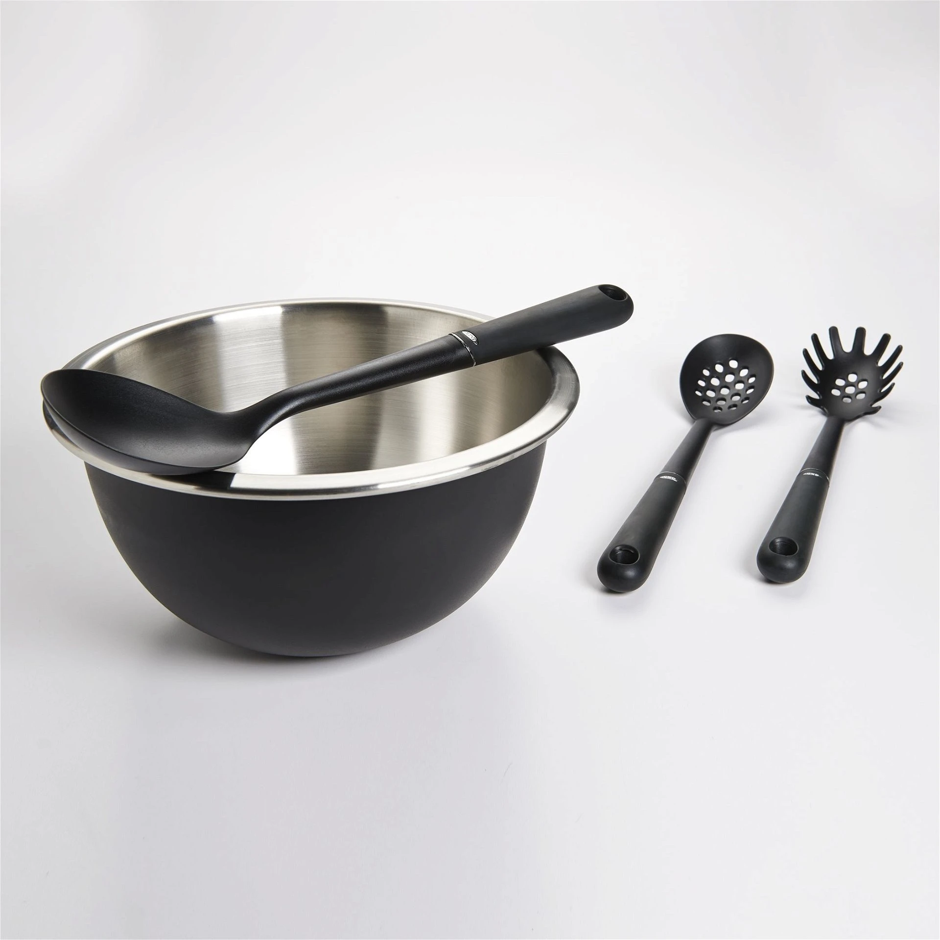 Equip your kitchen in a matching set of utensils from OXO. This 4-Piece set of nylon utensils includes a square turner, slotted spoon, serving spoon, and spaghetti server. Each tool is designed with an oversized head, making it easier to use, and a non-slip grip that makes it comfortable to handle. Made from nylon, these utensils are safe for use on non-stick cookware and are heat safe up to 400°F, which adds a great deal of versatility to them. Cook and serve any recipe you can imagine with this set of 4 nylon tools from OXO, get yours today!
