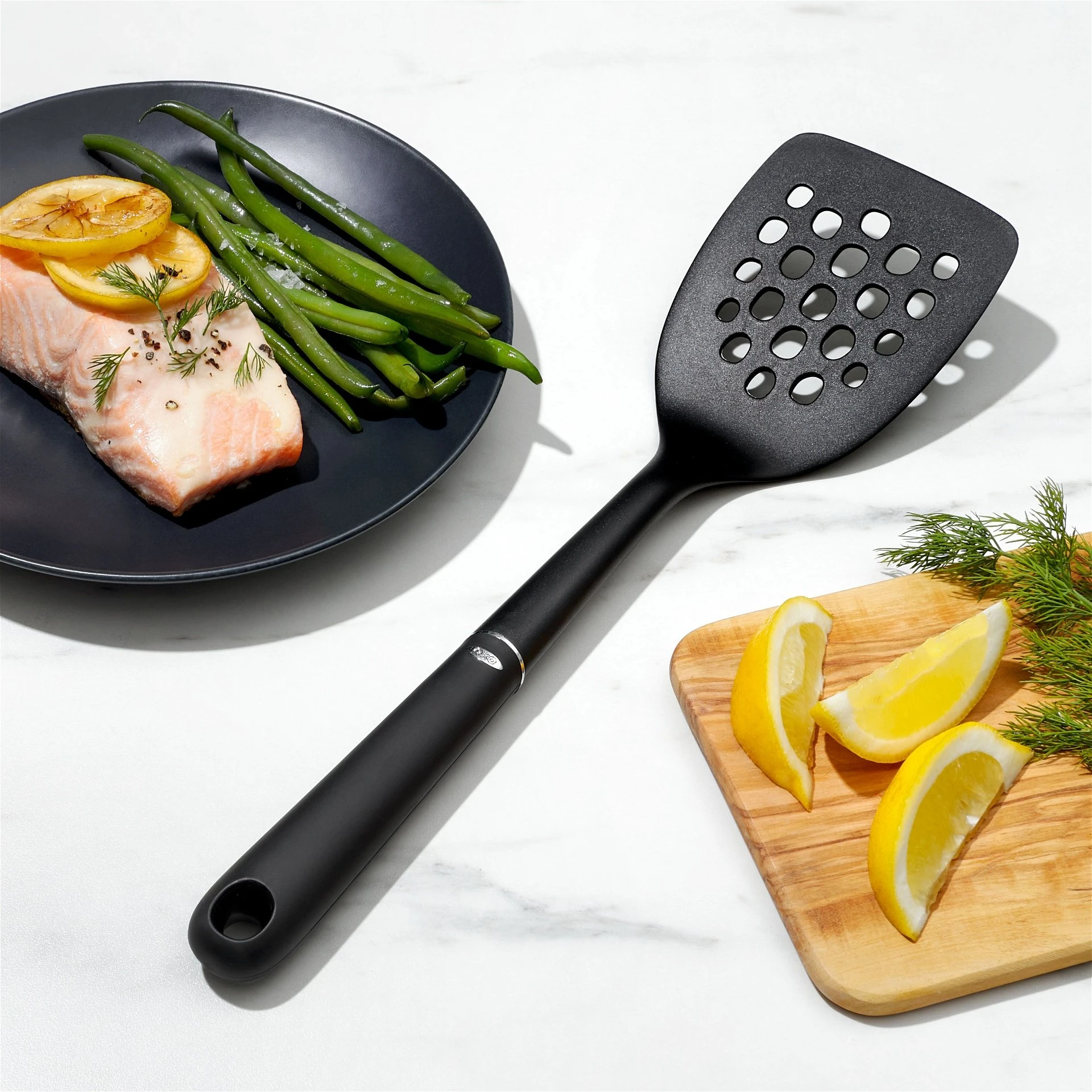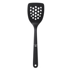 The smells that come from the kitchen should be of sizzling bacon or a simmering mushroom beef stew and not burning utensils; be confident of your tools with an OXO Good Grips nylon square turner. The OXO’s nylon construction will give you a worry free experience turning pancakes, eggs or a grilled cheese sandwich. The nylon is heat resistant up to 400 F is accented with stainless steel for a more contemporary look. Make turning your favorite foods simple with an OXO nylon square turner.