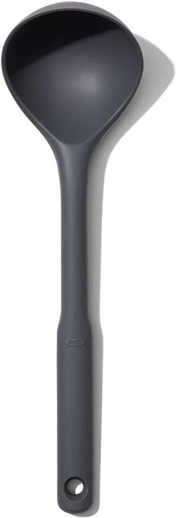 Serve up your restaurant-quality soup with ease using the OXO Silicone Everyday Ladle. This silicone ladle is designed with slosh-proof edges to ensure that you can get full servings of your soup without spilling. Because it is made of silicone with a metal core, this ladle is heat-resistant and dishwasher safe, so itβs easy to clean and safe for use with all types of cookware. If you are ready to serve up your favorite soup or sauce with ease, get the OXO Silicone Everyday Ladle today!