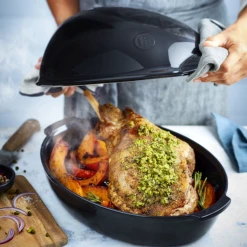 Golden Rabbit Enamelware 16″ X 12.5″ Roasting Pan With Lid | White