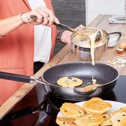- Handle placement prevents the handle from getting hot