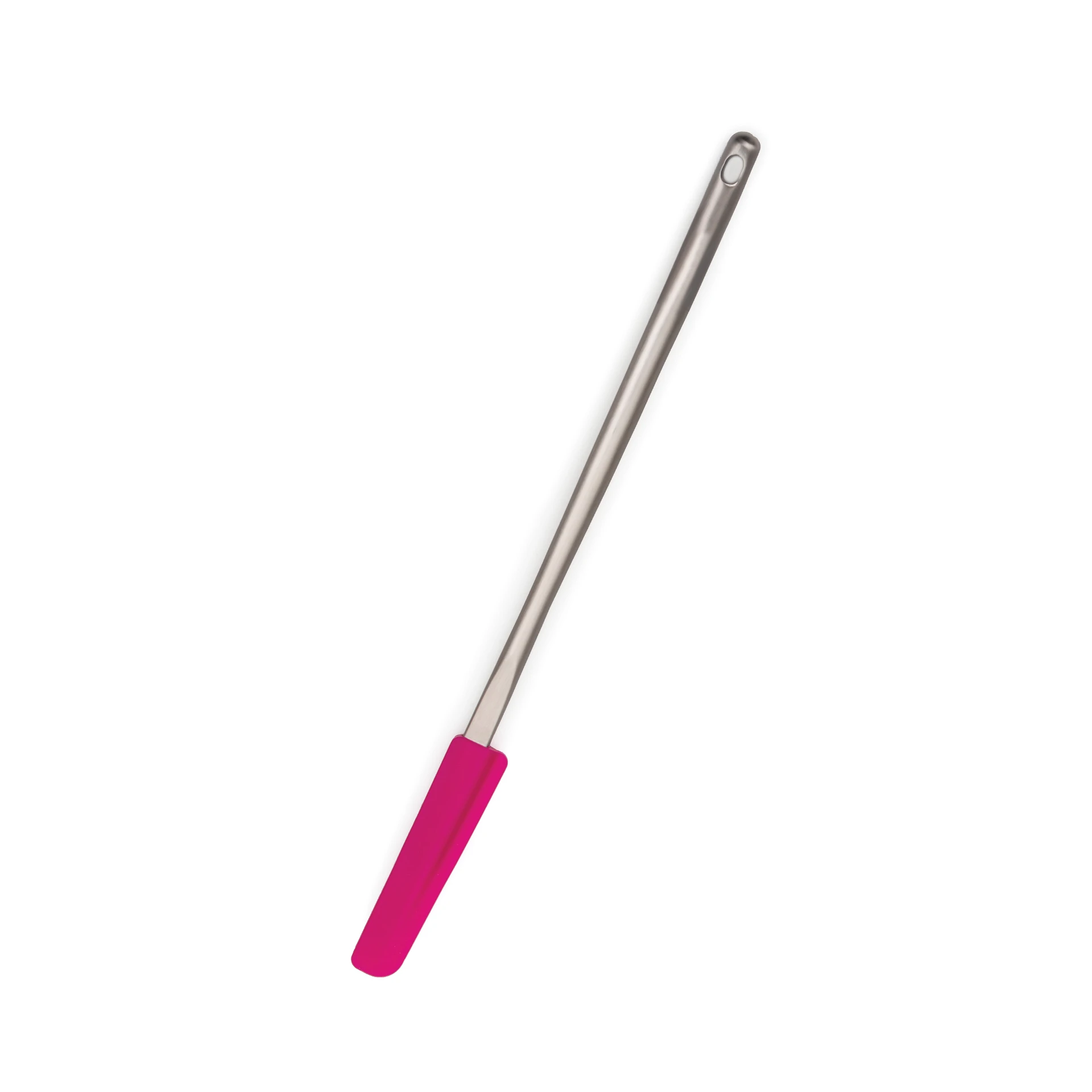 - Flexible silicone spatula with extra-long handle easily reaches to the bottom of the blender