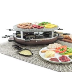 - Includes 8 heat-resistant serving dishes and 8 raclette spatulas