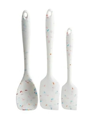 Flip meat, smooth batter, scoop sauce, and move other foods around easily in your skillet or frying pan, mixing bowl, and more with the White Confetti Silicone Spatulas – Set of 3 by Trudeau. Over the surface, bright, colorful confetti covers the silicone spatulas to appeal to your artistic, joyful side. The spatulas also give you an easy way to smooth or spread out cookie dough and other ingredients. Safe up to 428°F, the BPA-free spatulas allow you to use them in the oven, microwave, or freezer. Even with daily use, the silicone construction prevents unpleasant stains or odors, as well as scratches on your everyday cookware or bakeware. For easy, hands-off cleaning, the dishwasher makes the best option. Enjoy the simple pleasures of mixing scrambled eggs, serving cheesy lasagna, or cutting a slice of zucchini cake effortlessly with the Trudeau White Confetti Silicone Spatulas – Set of 3.