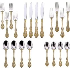 - Includes: 4 Dinner Knives, 4 Dinner Spoons, 4 Teaspoons, 4 Dinner Forks, 4 Salad Forks