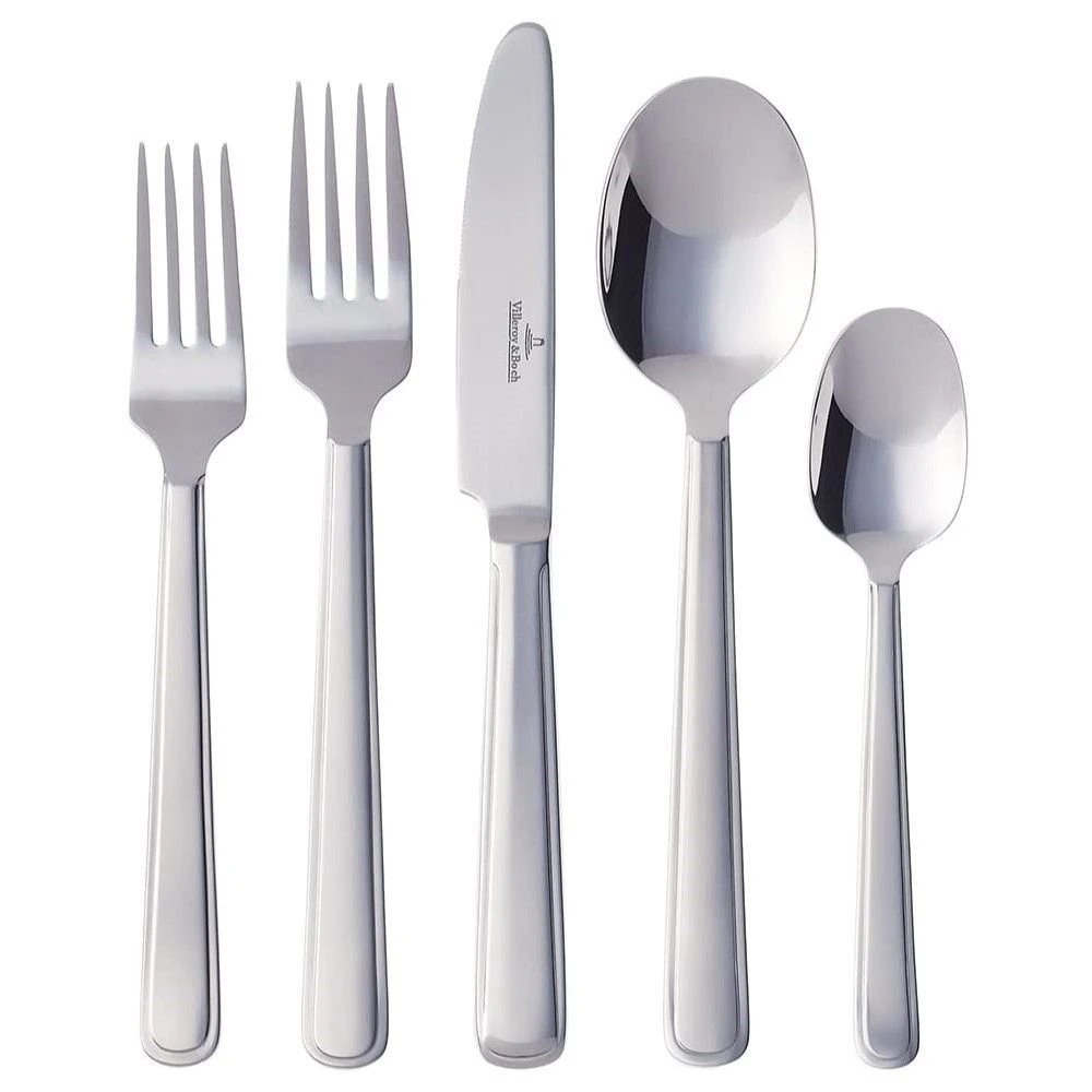 Enjoy your dinner with the simple, elegant style of the Celeste 60-Piece Stainless Steel Flatware Set by Villeroy & Boch! The minimalistic shape, stainless steel color, and mirrored finish make this a classic and versatile set that will look beautiful with any table spread. This set includes 12 dinner knives, 12 dinner spoons, 12 teaspoons, 12 dinner forks, and 12 salad forks. Made from 18/10 stainless steel, each piece in this set is durable, rust-resistant, and dishwasher-safe. Whether you need flatware for casual meals or refined parties, the Celeste 60-Piece Stainless Steel Flatware Set by Villeroy & Boch is a perfect choice!