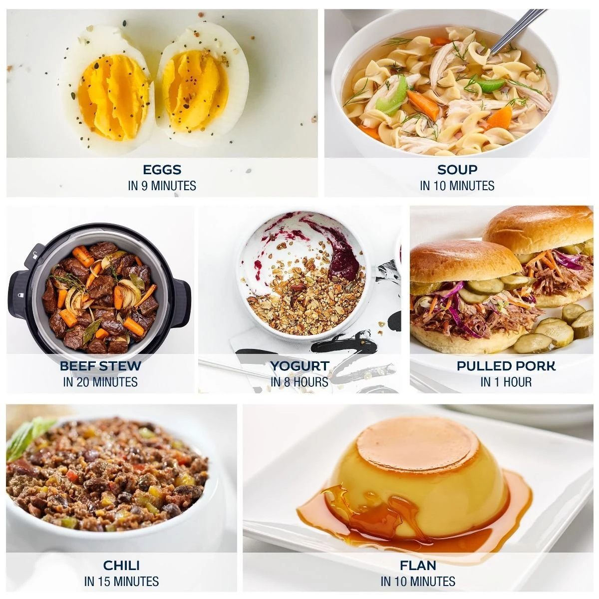 With the ability to slow cook, pressure cook, saute, steam, prepare yogurt & grains, and so much more, this multi-cooker will remove the need for added appliances on your countertop. The slow cook and pressure cook options let you easily prepare stews, soups, or roasts on your own time – allowing for optimal slow and rapid flavor infusions. The Grains function can be further customized to suit a variety of foods, from risotto to barley, or even quinoa. The Eggs function can easily prepare a hard or jammy-boiled egg or whip up a fluffy omelet at the press of a button, while the Yogurt and Dessert functions can prepare delicate recipes like Greek yogurt, custards, or cheesecakes. To offer you ultimate control, the Flex, Saute, Simmer, and Steam functions let you manually program the unit to suit your recipe’s needs, while the Keep Warm and Time Delay options ensure foods are at the perfect temperature when ready to serve.