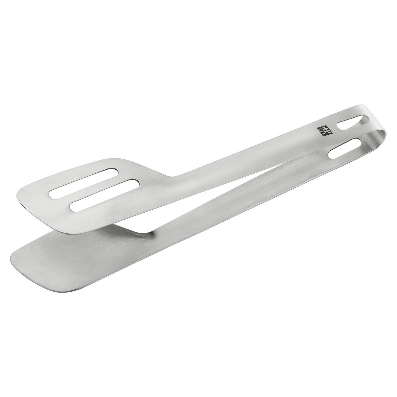 Serve your guests in style with the Zwilling Pro Stainless Steel Universal Tongs. Designed for versatile use, the Stainless Steel Universal Tongs feature a solid and flat head, making them easily able to grip everything from noodles to chicken. The heads of the tongs are slightly concave, making their grip on food more secure, while at the same time allowing for excess liquids to be easily drained off if needed. These tongs are made from high-quality stainless steel that resists corrosion and is safe to use in your dishwasher, making them a low-maintenance addition to your kitchen arsenal, so get yours today!